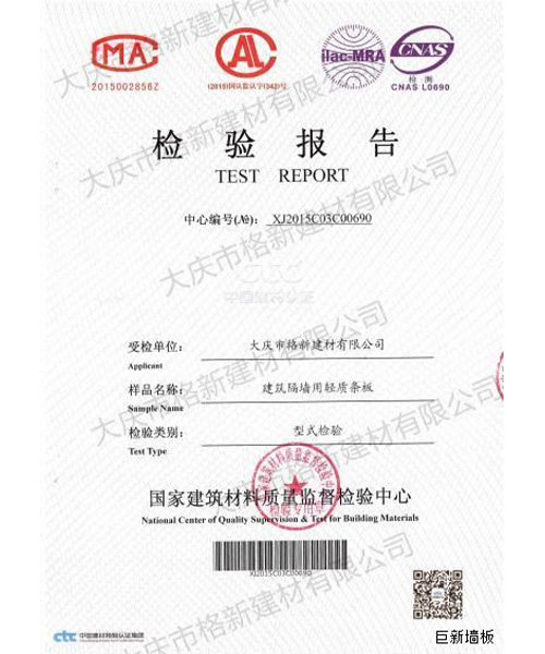 巨新墻板90型墻材是建筑行業的新型墻體材料,產品主要應用于現代樓宇框架結構中的室內與室外隔墻。巨新墻板與普通砌體相比在隔音、防火、保溫、防潮、抗震性能上更具有優越性。巨新牌輕質復合墻板的各項性能,符合國標GB/T23451-2023,行標JG/T169-2016技術要求。